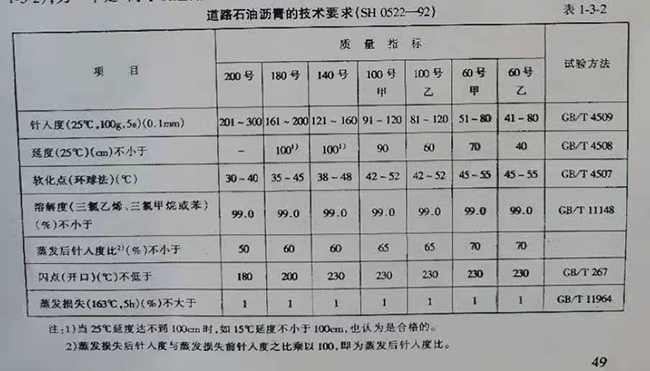 彩运彩票注:美国1为针人度级标准,美国2为粘度级标准。 上述标准,可以分成两大类,一类是针入度级标准,一类是粘度级标准。美国的部分州、澳 大利亚、加拿大是粘度级,其他国家仍然停留在针入度级标准的阶段。从表中看出,沥青的标 准指标按所反映的沥青性能不同,主要有以下项目: (1)分级指标:针人度、60℃粘度; (2)综合指标(包括纯度):密度、针人度指数、含蜡量、溶解度、灰分; (3)高温稳定性指标:软化点、60℃粘度; (4)低温抗裂性能指标:延度、脆点; (5)耐老化性能指标:薄膜加热试验、旋转薄膜加热试验、蒸发损失试验、旋转烧瓶试验,试 验前后的质量损失、针人度比、软化点升高、粘度比、点、延度等 (6)施工及安全指标:闪点、135℃粘度。 我国的道路沥青产品标准,一直归口由中国石油化工总公司负责制订。现行道路石油沥 青标准有两个,一个是中华人民共和国石油化工行业标准"道路石油沥青"(SH0522—92,见表 1-3-2);另一个是"高等级道路石油沥青"(GB/T15180一94,见表1-3-3)